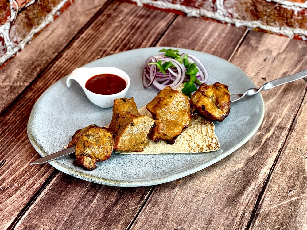 Шея свиная, лук репчатый,зелень, специи, масло растительное, томаты